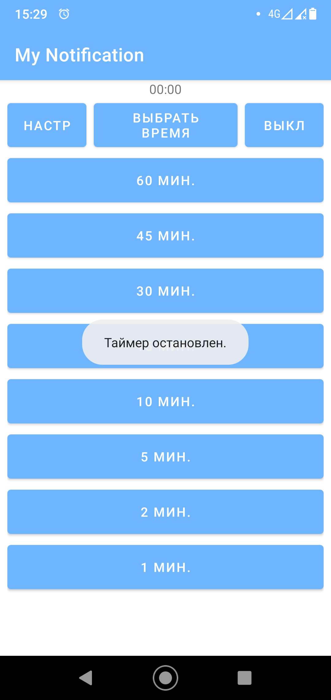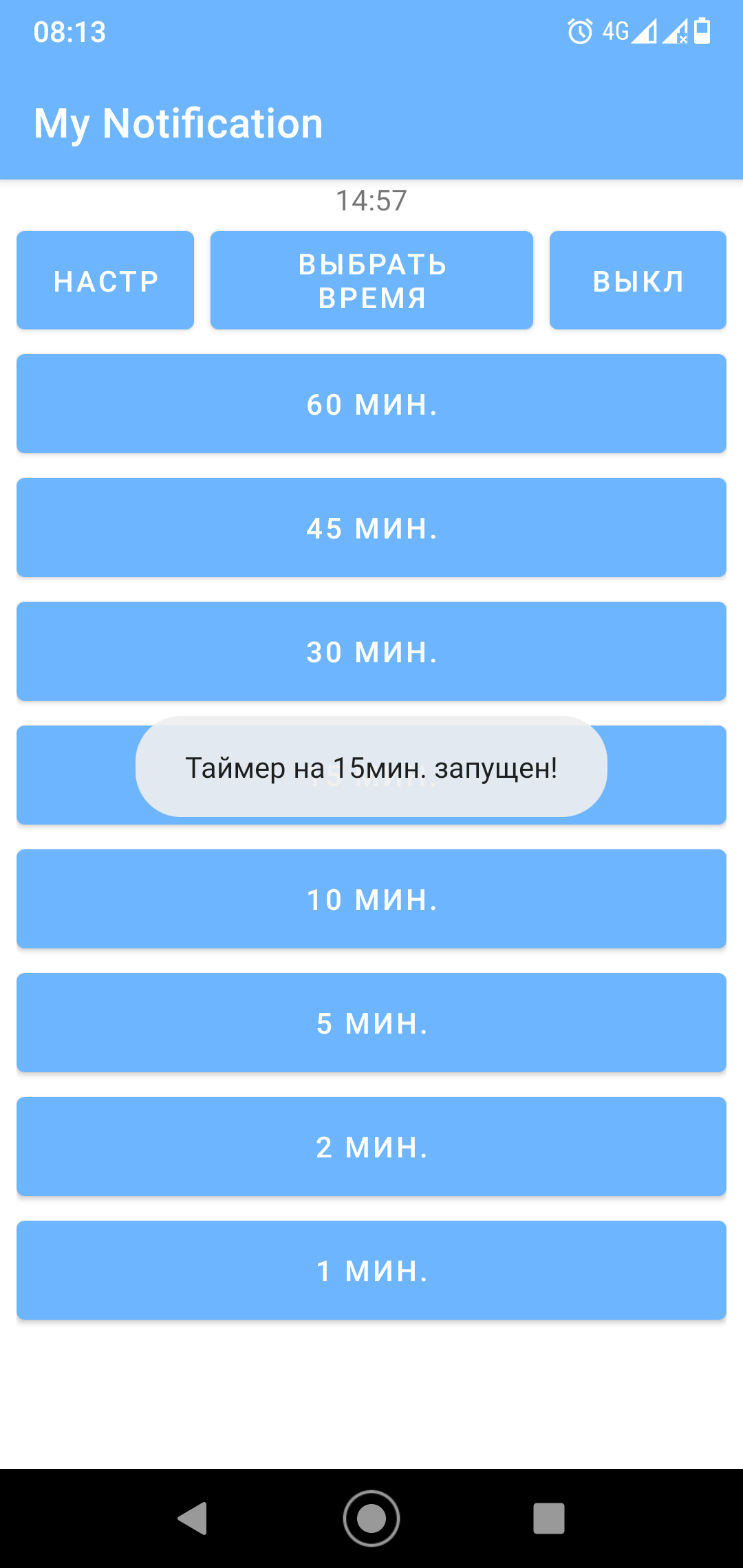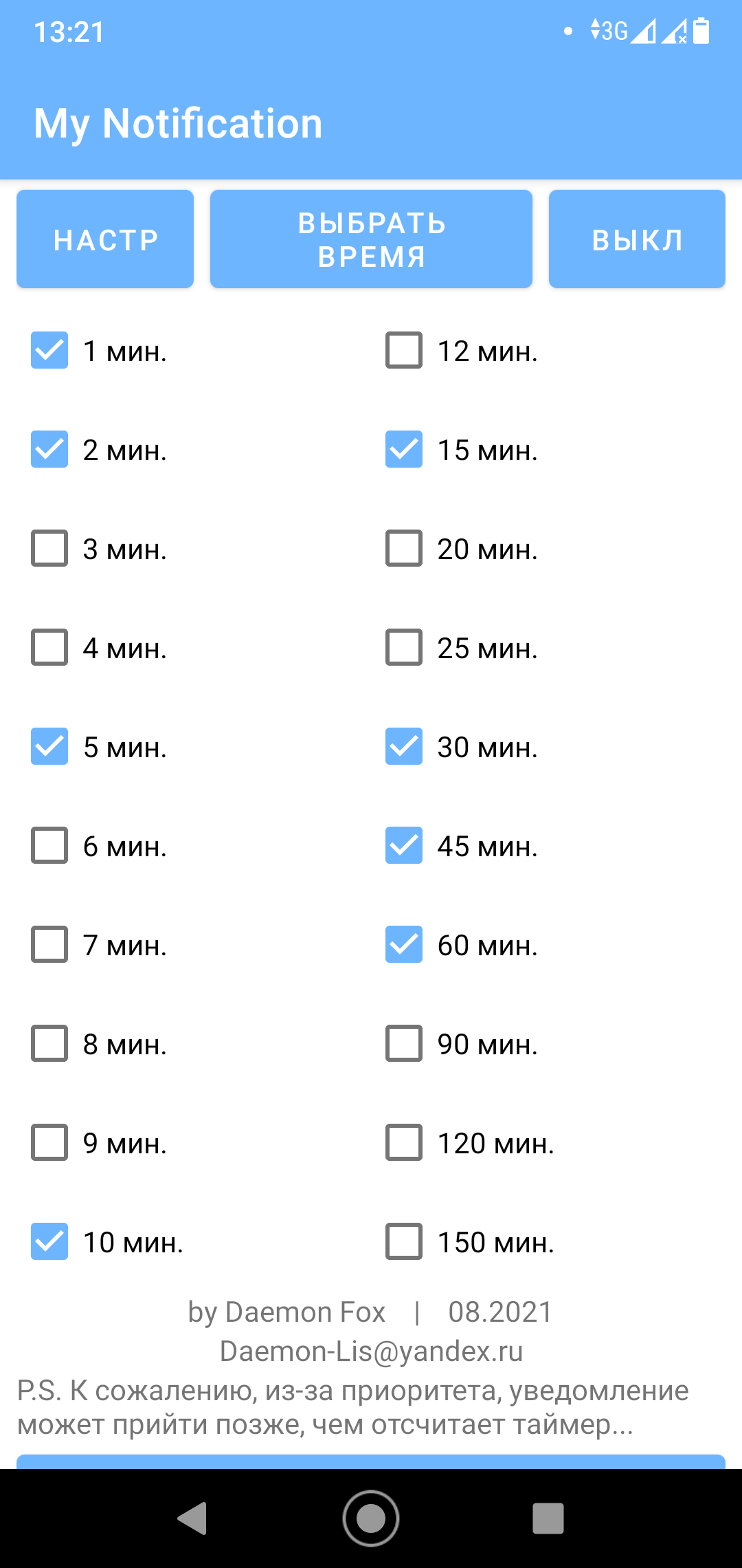 PS. К сожалению, из-за приоритета, уведомление может прийти позже, чем отсчитает таймер. Если вам важна точность, используйте другое приложение.